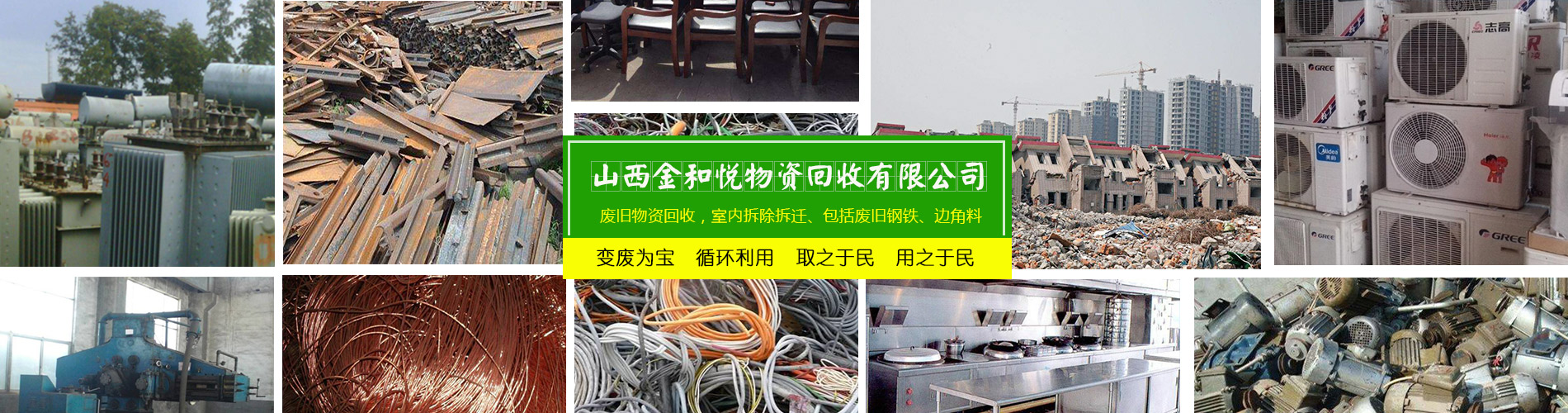 山西金和悅物資回收有限公司是一家從事廢舊物資回收,整廠設(shè)備打包回收的公司。主要可回收社會(huì)各行各業(yè)的廢舊物資,包括廢鋼廢鐵/廢銅廢鋁/稀有金屬/廢不銹鋼/廢舊機(jī)械設(shè)備/電線電纜/電池電瓶回收以及廢舊廠房整體設(shè)備打包回收。免費(fèi)上門估價(jià),現(xiàn)場(chǎng)付款,可帶工人上門,清理庫(kù)房。我公司立足于環(huán)保,利用閑置的資源,變廢為寶,循環(huán)利用,取之于民,用之于民,讓有效的資源得到合理的利用,充分體現(xiàn)它的價(jià)值。公司堅(jiān)持“以質(zhì)量求生存,以信譽(yù)求發(fā)展”的基本原則,為山西及周邊地區(qū)的企業(yè)、單位和個(gè)人提供安全、快捷的服務(wù)。歡迎各界有廢料或需要拆除的人士來(lái)電洽談業(yè)務(wù)!